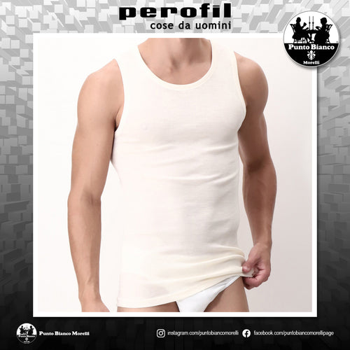 Canottiera intima da uomo spalla larga in cotone lana e seta Perofil